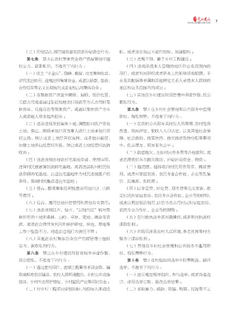 第七条 禁止在农村集体资金资产资源管理中擅 (三)违规干预、插手乡村工程建设 ;