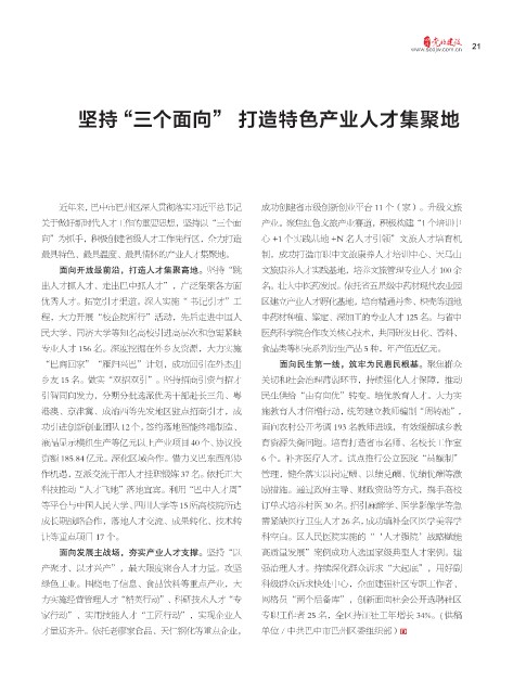 出人才抓人才、走出巴中抓人才”,广泛集聚各方面 名。壮大中医药发展。依托省五星级中药材现代农业园