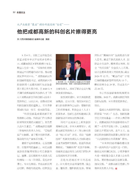 局(成都高新区科技创新局前身) 接到调任通知,宋大勇选择直 善流畅,2022 年,成都高新区科技