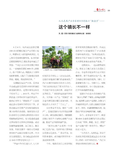 展上取得显著成绩。他带领技术团 产”,是他回到家乡内江后笃定的事 励农户多元化种植朝天椒、线椒。