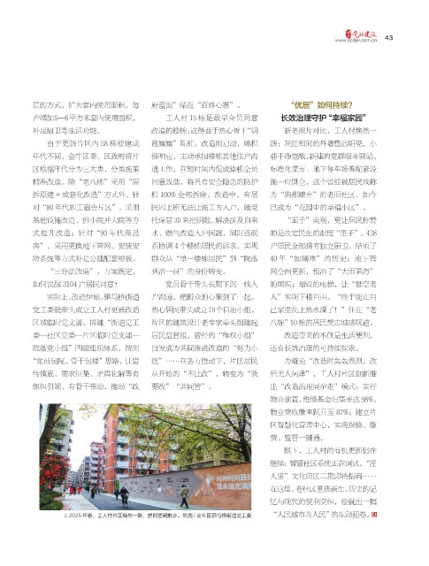 对“80 年代职工宿舍片区”,采用 民因上班无法让施工方入户,她受 已成为“花园中的幸福小区”。