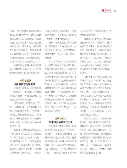 2018 年,冯攀龙跟随师父进行 与担当总是如影随形。今年年初, 空制造一线、精益求精的认可,更