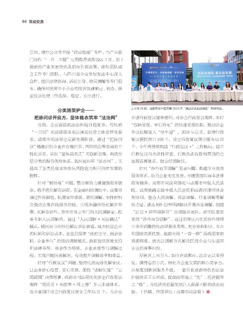 让企业舒心经营、安心发展。围绕“进解优促”“立 从制度创新到服务升级,一套具有成都特色的法治