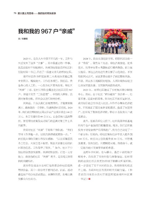 能力、敢担当的社区 “两委”班子,是实现长效帮 相处中,我收获了宝贵经验与真挚情谊。驻村帮