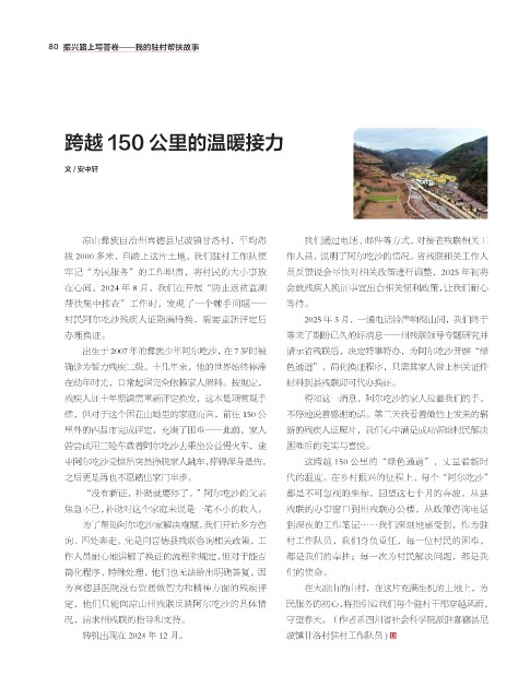 况,请求州残联的指导和支持。 守望春天。(作者系四川省社会科学院派驻喜德县尼