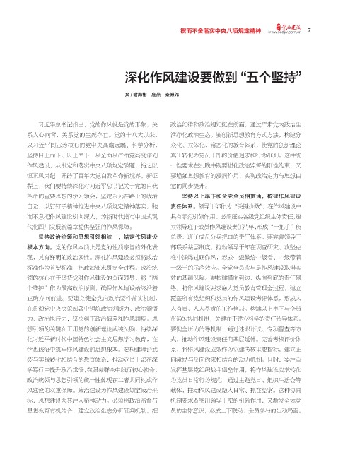 学思践悟中筑牢作风建设的思想根基。要构建理论武 系,将作风建设成效作为党建考核重要指标,建立正