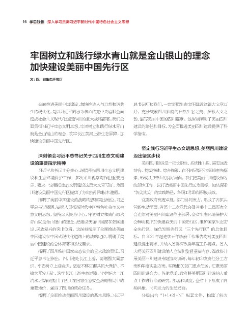 面贯彻习近平生态文明思想,牢固树立和践行绿水青山 建设的路径和目标,为全面推进美丽四川建设提供了科