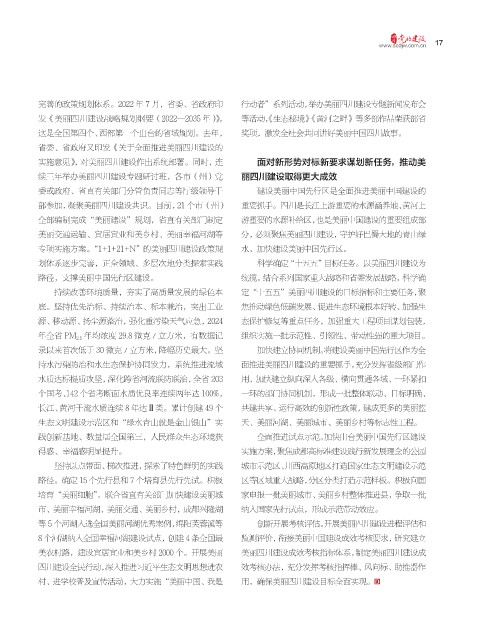 实施意见》,对美丽四川建设作出系统部署。同时,连 面对新形势对标新要求谋划新任务,推动美