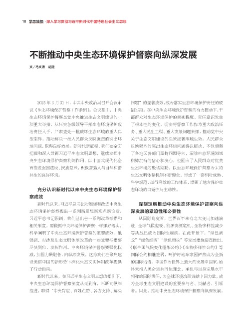 把握和深入贯彻习近平生态文明思想,继续发挥中 了各地区各部门坚持问题导向,清除生态环境领域