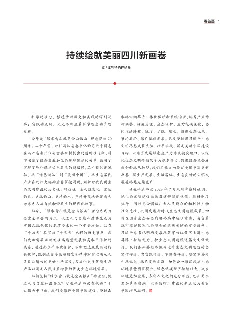 态文明建设的历史性、转折性、全局性变化,更蓝 习近平总书记 2023 年 7 月来川考察时强调,