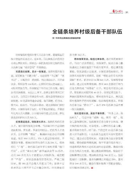 党委高位统筹,县乡一体推进。培育村级后备力 素能。依托县级示范培训、乡镇党委兜底培训,开