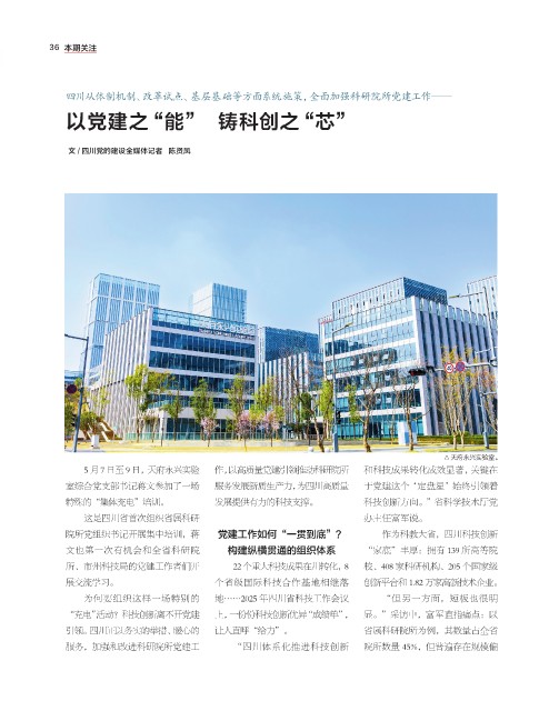 5 月 7 日至 9 日,天府永兴实验 作,以高质量党建引领推动科研院所 和科技成果转化成效显著,关键在