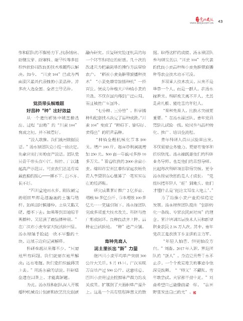 地里有问题,我们就要在地里解 继四川小麦平均单产突破 300 队的“新人”。身边党员骨干永不