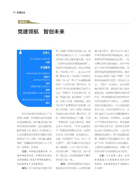 对话嘉宾 定期召开党建圆桌会,整合高等院 在川大院大所党建联建共同体、省