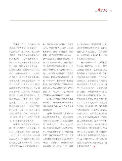才将研究方向与国家战略需求对 层次问题,扩大用人自主权,破除 分释放创新活力。