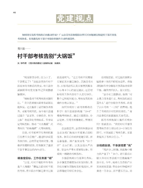 已在青川全县推广,通过科学设置 任务,条目式形成拼党建引领、拼 著提高了考核公信力。”