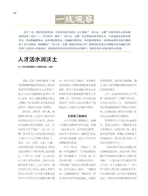 川印发《关于加强“一村六员一主 一直对农业有一份特殊的感情。 业种养能手,长期扎根一线、服务