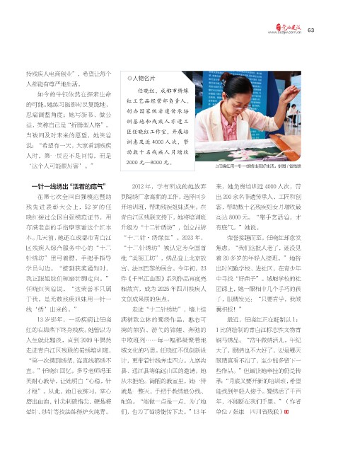 一针一线绣出“活着的底气” 2012 年,学有所成的她放弃 来,她免费培训近 4000 人次,带
