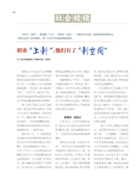 感到枯燥,“想尝试一份有挑战的 在哪里?人们为何选择从事新职 在宠物培训行业深耕 4 年多