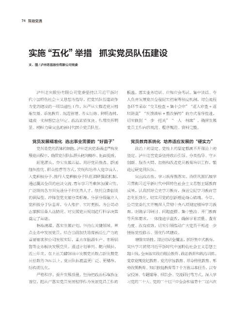 展党员程序,确保党员队伍源头靶向精准、拓面提质。 坚定。泸州老窖党委坚持政治引领、分类指导、守正