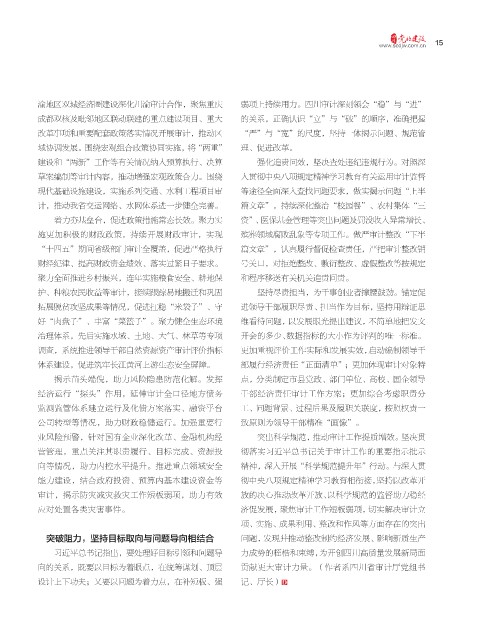向的关系,既要以目标为着眼点,在统筹谋划、顶层 贡献更大审计力量。(作者系四川省审计厅党组书