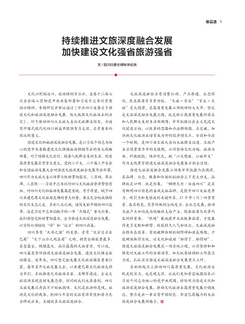 游是文化的载体,把四川丰富的文旅资源价值和潜力充 远,努力走出一条具有中国特色、彰显巴蜀魅力的文旅