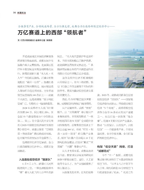 低空运营航线 100 条以上……逐鹿 的关键支点。 放。2023 年,成都成功跻身全国首
