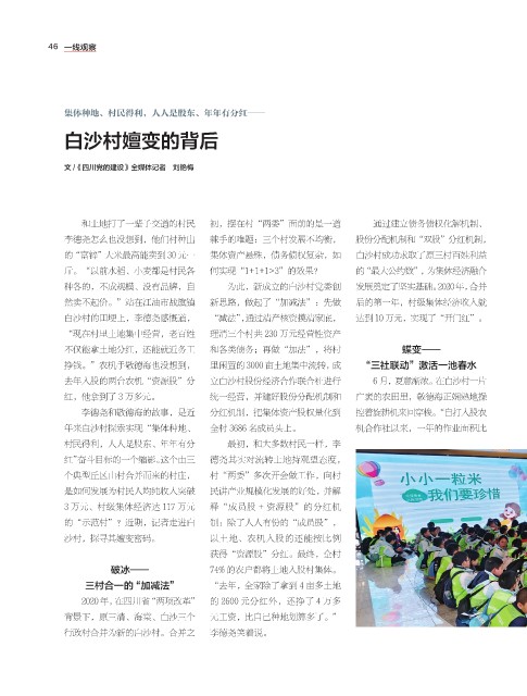 斤。“以前水稻、小麦都是村民各 何实现“1+1+1>3”的效果? 的“最大公约数”,为集体经济融合