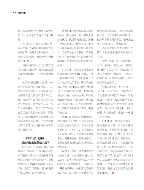 培训体系,依托省内研培院校,以 村。为延续羌族文化根脉,罗香群 四川乡村非遗的保护实践中牢牢