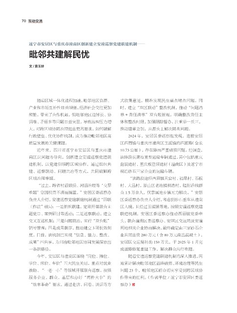 行政壁垒、优化协作机制,成为推动毗邻地区高 2024 年,安居区委巡察组发现,连接安居