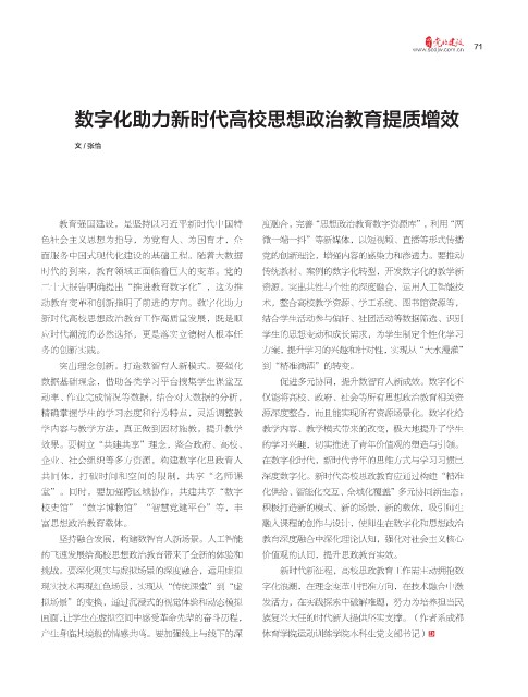 共同体,打破时间和空间的限制,共享“名师课 深度数字化。新时代高校思政教育应通过构建“精准