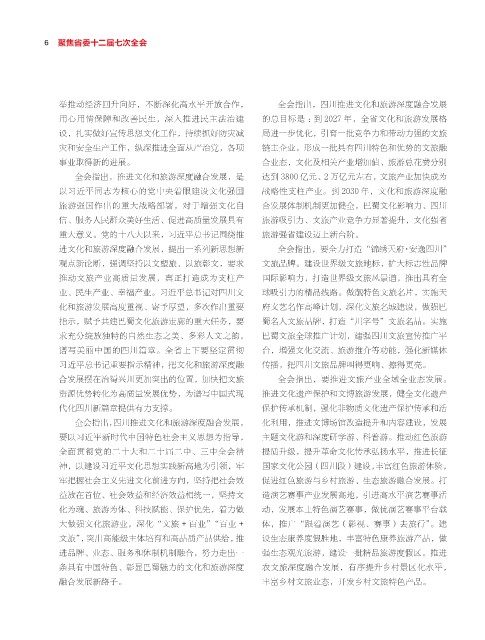 旅游强国作出的重大战略部署,对于增强文化自 合发展体制机制更加健全,巴蜀文化影响力、四川