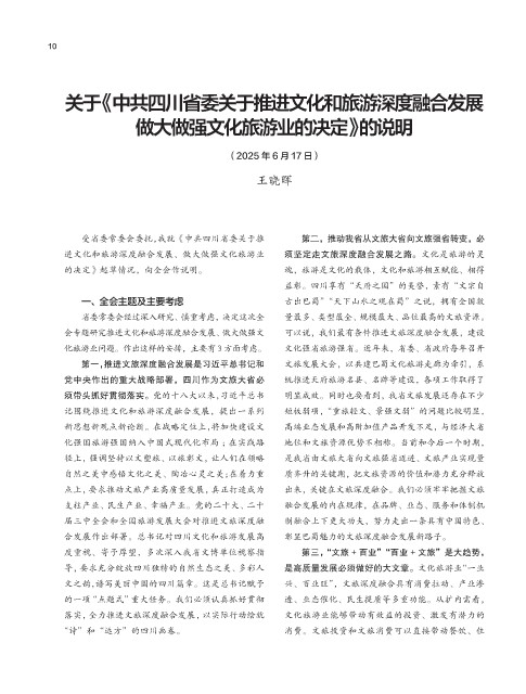 受省委常委会委托,我就《中共四川省委关于推 第二,推动我省从文旅大省向文旅强省转变,必