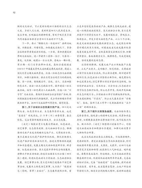 之美、多彩人文之韵,更好彰显四川人民热爱生活、 设一批精品旅游度假区。农文旅融合方面,重点是有