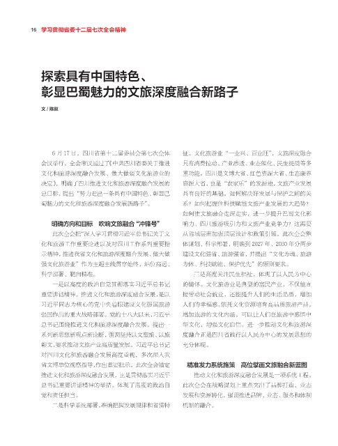 6 月 17 日,四川省第十二届委员会第七次全体 征。文化旅游业“一业兴、百业旺”,文旅深度融合