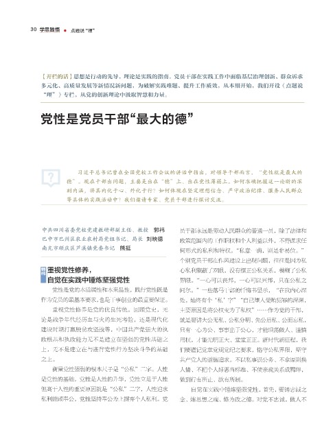 重视党性修养是党的优良传统。回顾党史,无 主要原因是将公权变为了私权”……作为党的干部,