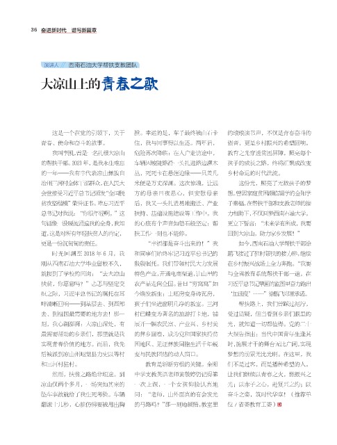 实现青春价值的地方。而后,我先 困地区、见证彝族同胞生活千年蜕 时,施展才干的舞台无比广阔,实现