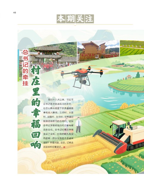 ——四川公务员调任工作观察 40 ——解码四川公务员调任工作 本期关注 本 期关 注 愿 服 务 志 党的十八大以来,习近平 总书记多次走进四川的乡村, 在巴山蜀水间留下许多温暖故 事和动人瞬间。三河村、火普 村、战旗村、永丰村,还有通过 视频连线慰问的石椅村,这些 总书记深情牵挂的村庄都有哪 些新变化,总书记叮嘱的事情 落实了没有,村民的收入有没 有提高、群众生活是不是越来 越好?带着问题,近日,记者走 访这些村庄看变迁。