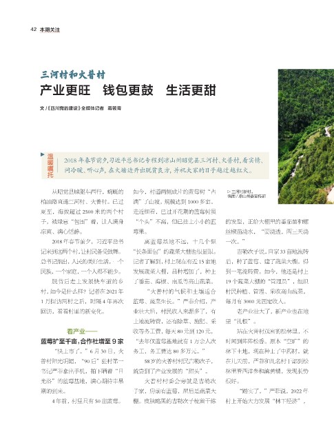 从昭觉县城驱车西行,蜿蜒的 如今,村道两侧成片的蓝莓树“占 三河村新村。
