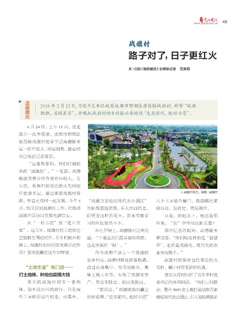 2018 年 2 月12 日,习近平总书记视察成都市郫都区唐昌镇战旗村,称赞“战旗