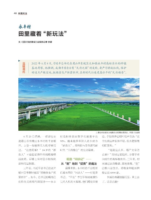 2022 年 6月8日,习近平总书记在眉山市东坡区太和镇永丰村高标准水稻种植