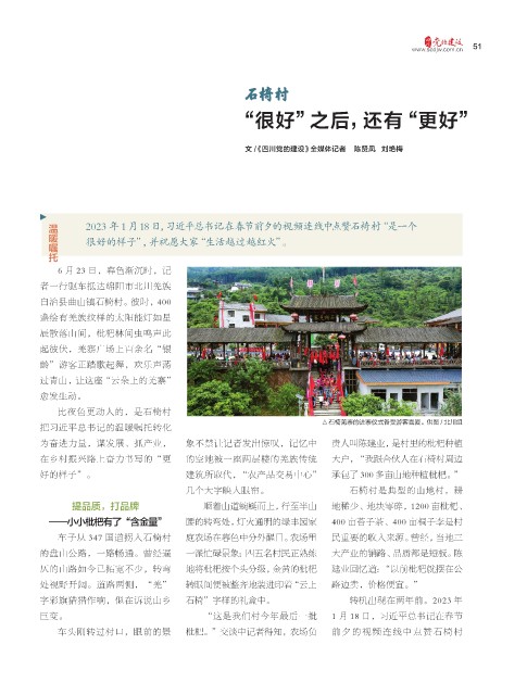 2023 年 1 月18 日,习近平总书记在春节前夕的视频连线中点赞石椅村“是一个