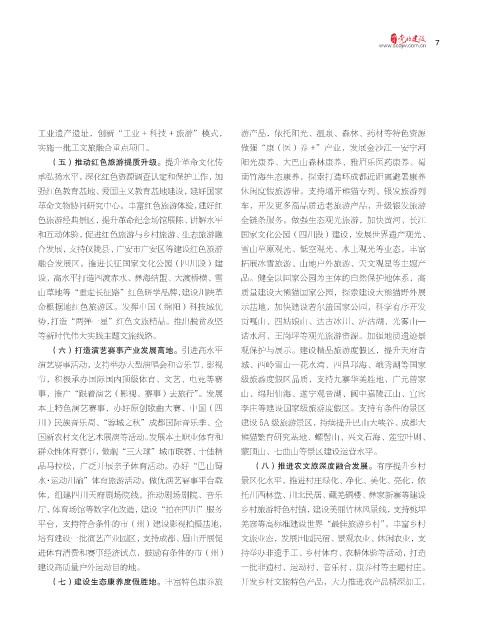 (五)推动红色旅游提质升级。提升革命文化传 阳光康养、大巴山森林康养、雅眉乐医药康养、蜀