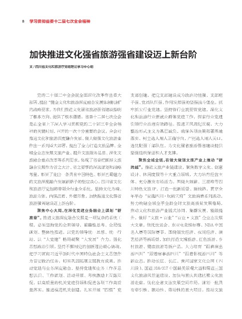 部署,提出“健全文化和旅游深度融合发展体制机制” 子强、党员队伍强、作用发挥强的坚强战斗堡垒。抓