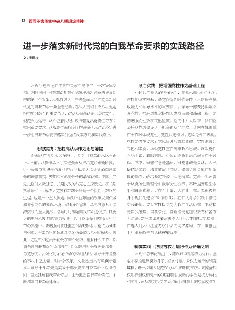 代党的自我革命一条重要经验。在深入贯彻中央八项规定 政能力和领导水平的重要保证。领导干部要把锤炼坚