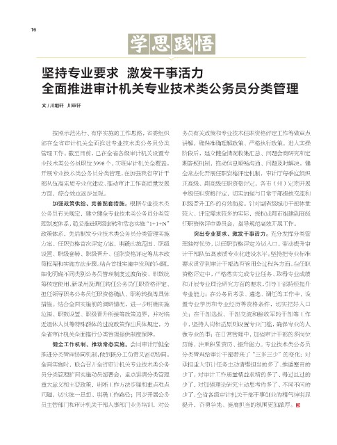 健全工作机制、推动常态实施。会同审计厅健全 历练,注重积累资历、提升能力。专业技术类公务员