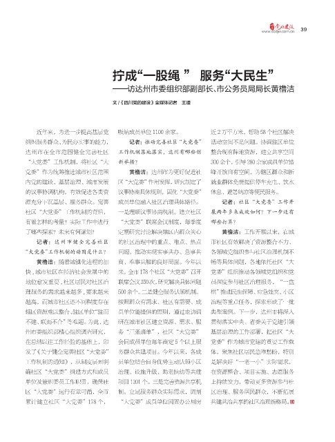 党委”作为统筹推进城市社区范围 黄橹洁:达州市为更好促进社 峰开放自有空间,为辖区群众和新