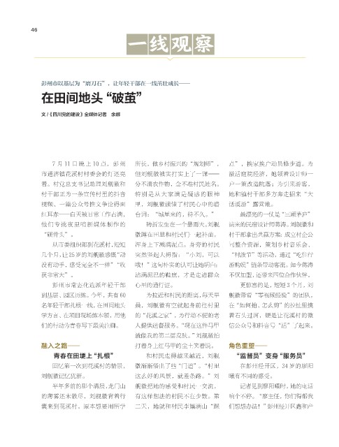 彭州市常态化选派年轻干部 心里的通行证。 更惊喜的是,短短 3 个月,刘