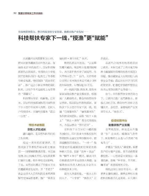 科技帮扶专家一线解难,近年 地广人稀的特点,整合科技帮扶专 下,甘孜州已推广运用新技术、新