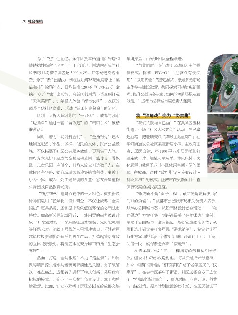 续运营。比如,T 立方双桥子篮球公园交给成都文旅 同出谋划策。原本计划建设的停车场,在居民建议下